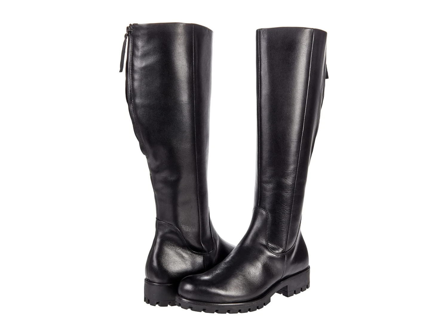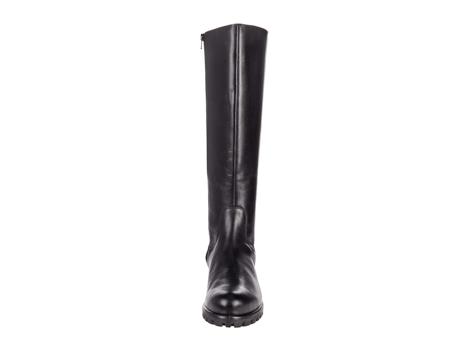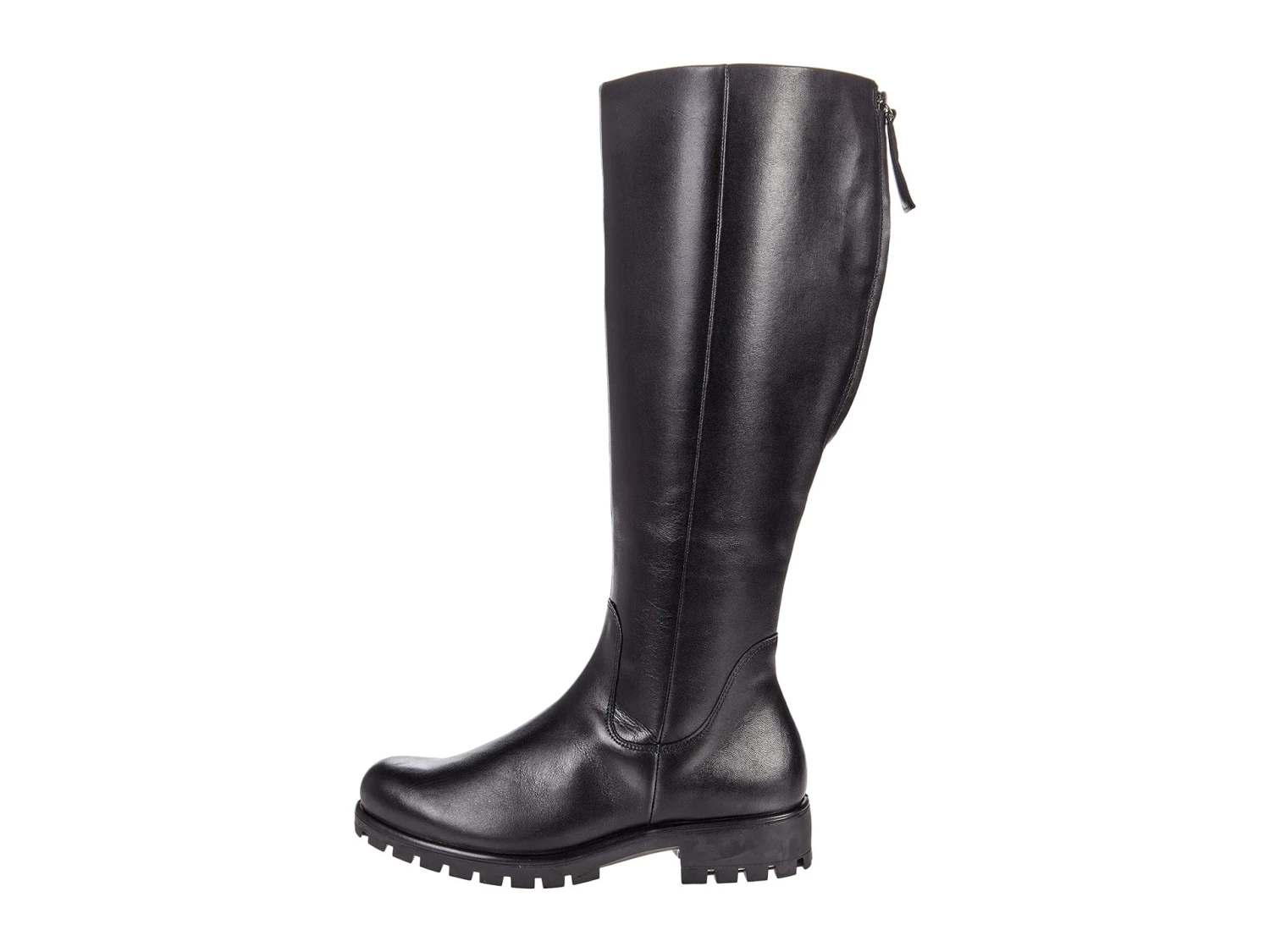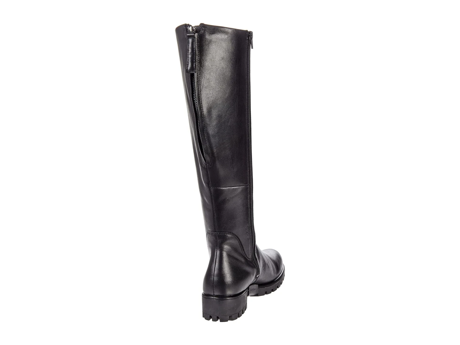 - Riding boot silhouette with extendable calf and full-length inside zip and back zip closures.